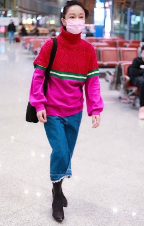 想要变身时尚达人,我们的穿搭就得另辟蹊径。不妨参考时尚潮人们的精彩示范,此次周迅的机场穿搭就别具一格。她以拼接玫红色毛衣搭配牛仔阔腿裤,尽显潇洒随性的魅力,气质尤为出众。**不过,她这种穿搭对一般人而言颇具挑战性,因其颜色与款式颇为独特,若要模仿,务必谨慎搭配**。