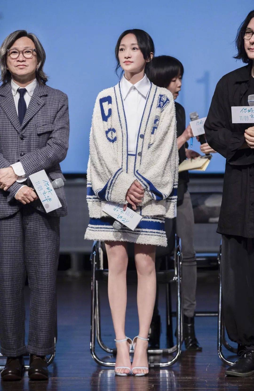 秋冬时节,毛衣必不可少。毛衣搭配方式多样,周迅将毛衣与开衫搭配,层次感尽显,文艺范儿十足。下半身搭配半身裙,与上半身的开衫相呼应。脚下搭配精致高跟鞋,勾勒出纤细脚踝,性感迷人。