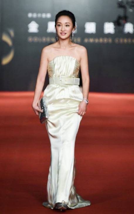 若皮肤保养良好,姐妹们不妨尝试各种性感的亮色系。这一身抹胸连衣裙的搭配十分吸睛,香槟色衬托肤色,彰显女神魅力。其精致的剪裁对身材要求颇高,可见周迅个人魅力非凡。